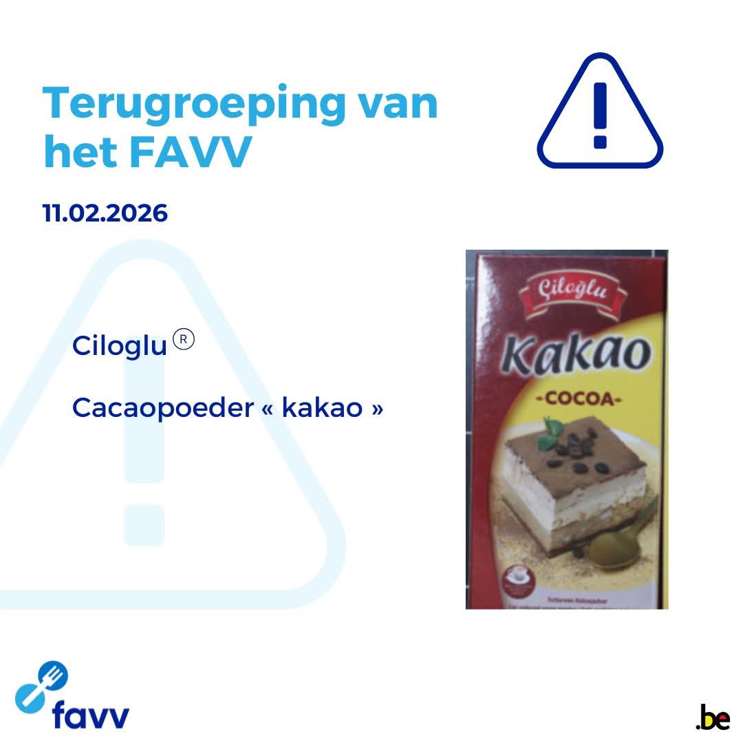 Belçika Federal Gıda Zinciri Güvenliği Ajansı, Ciloglu marka kakao tozunun ochratoksin A sınırını aştığı gerekçesiyle piyasadan toplandığını duyurdu.