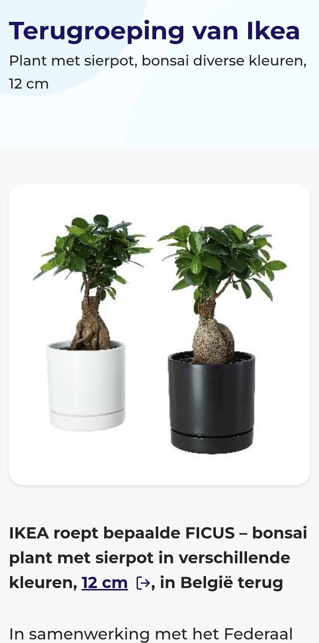 İsveç merkezli mobilya ve ev eşyaları zinciri IKEA, Belçika’da satılan bazı Ficus Microcarpa bonsai bitkilerini, sağlık riski oluşturmasa da bitki ve çevreye zarar verebilecek bir karantina organizması tespiti nedeniyle piyasadan toplatma kararı aldı.