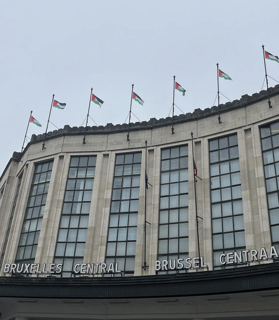 Bayraklar, halihazırda dalgalanan Belçika ve Avrupa Birliği bayraklarının yerine geçici olarak yerleştirildi. Olay, tren istasyonunu işleten demiryolu şirketi SNCB tarafından cumartesi günü doğrulandı. Kişilerin çatıya nasıl ulaştığı henüz belirsizliğini koruyor.