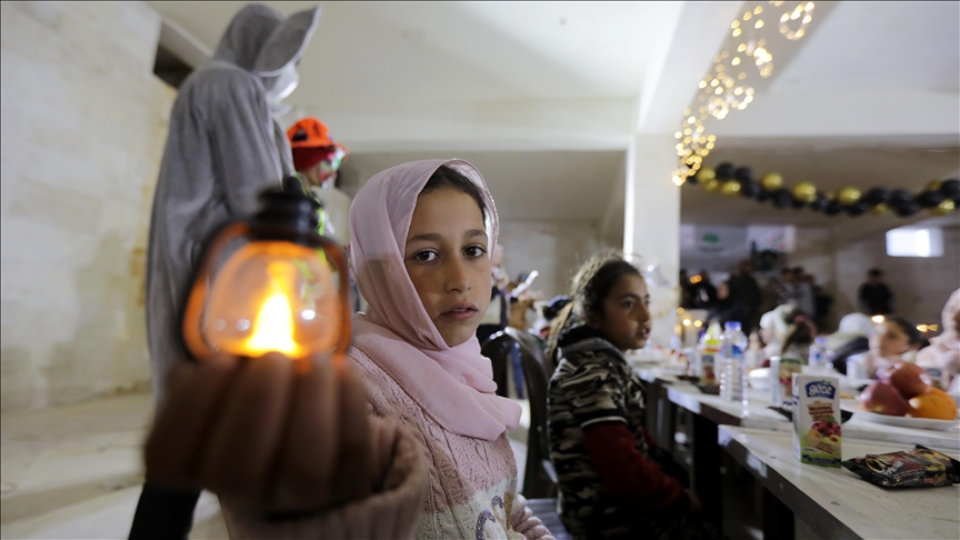 Suriye’nin kuzeyindeki Halep’in Azez ilçesinde yaşayan yetim çocuklar, Dünya Yetimler Günü dolayısıyla düzenlenen özel bir iftar programında buluştu.